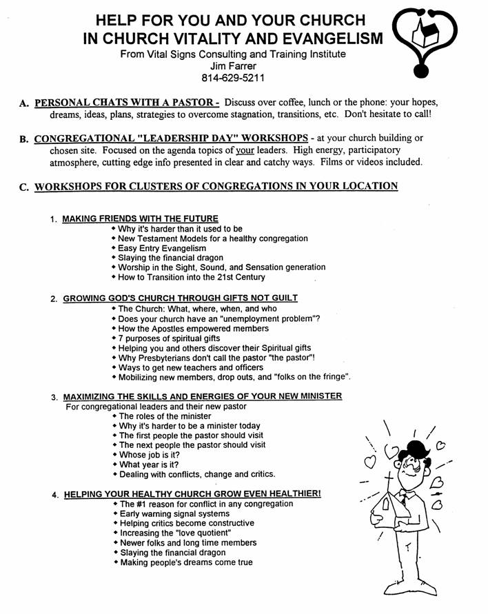 What People Are Saying about Vital Signs and Jim Farrer an incredible collector, compiler, and producer of evangelism tips and training processes. Herb Miller Editor, The Parish Paper
