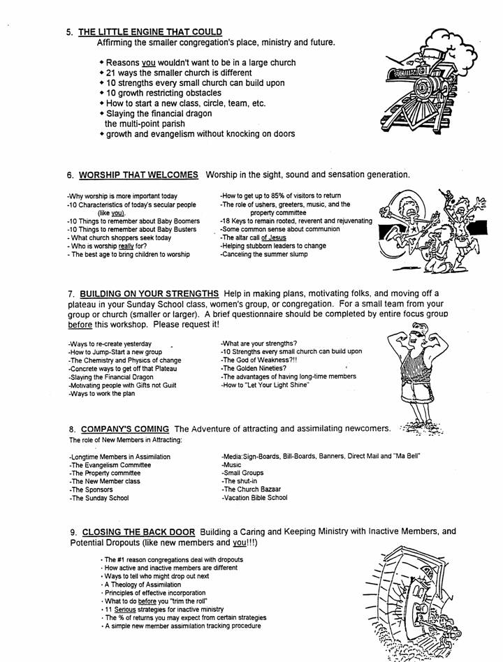 Members of our small church task force were very much impressed with your workshops at the Small Church Conference at Epworth-by-the-Sea on St. Simons Island. Leila McGeath Atlanta, GA